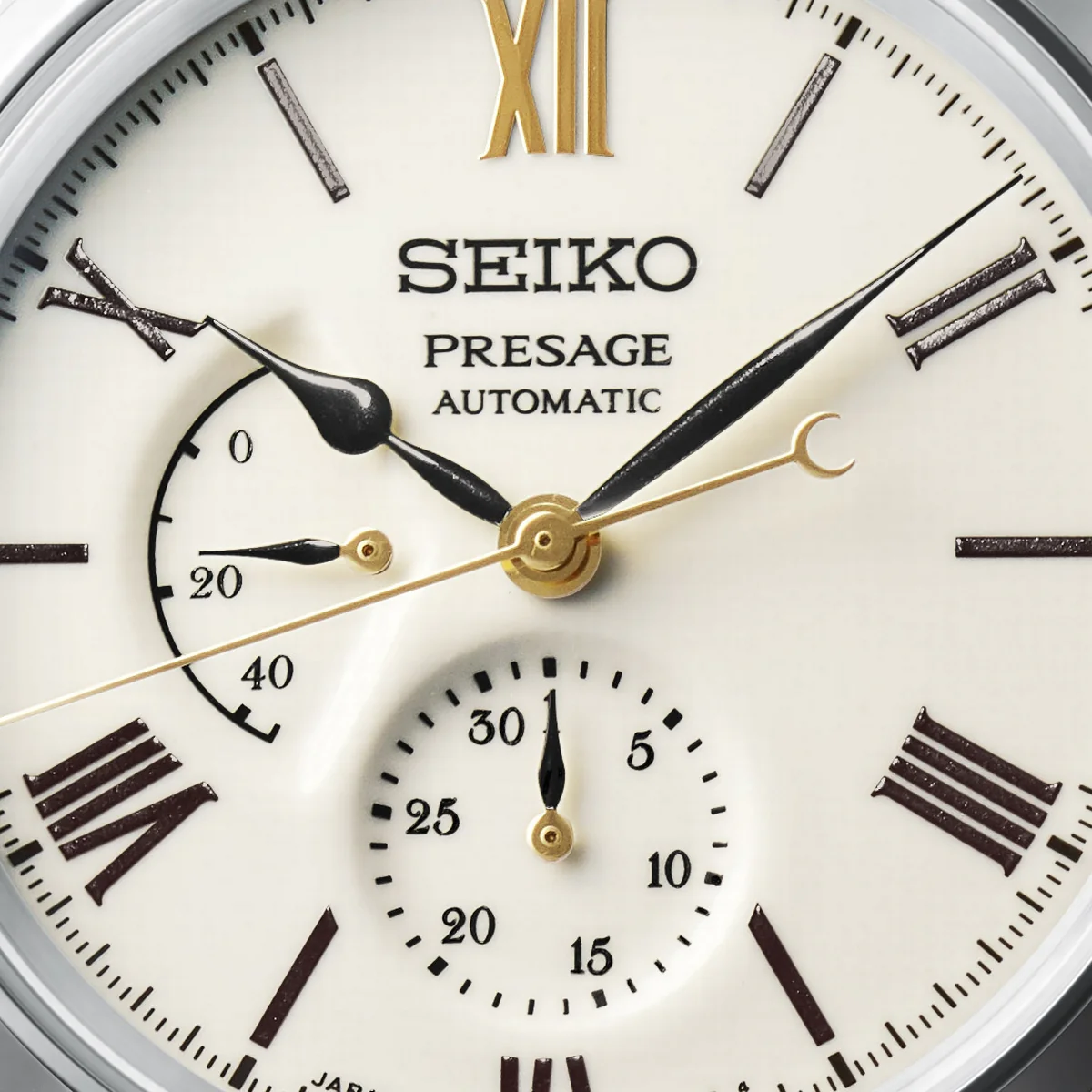 This limited-edition timepiece commemorates 110 years of Seiko wristwatch making expertise and is inspired by Japan�s � and Seiko�s � first ever wristwatch; The Laurel.The layout of the watch dial is inspired by the 1913 original, which was a classic piece featuring an enamelled dial with a signature �red twelve� marker at 12 o�clock � a design element still seen on many Seiko watches today � but replaced with a gold tone on this new interpretation.The Arita porcelain dial was created through a method of traditional Japanese craftsmanship formed in the mountainous area of Arita, Japan which began over four centuries ago, when high quality porcelain clay was discovered. Prized for centuries for its unique blue-white colour, creating each individual porcelain watch dial involves great skill and patience through a multi-stage process with several phases of firing.Seiko watchmakers often draw inspiration from their local history, culture and surroundings - the Presage Craftsmanship Series celebrates the Japanese 'Takumi' - timepieces which are individually handcrafted by master artisans combining Seiko�s latest watchmaking techniques with centuries of traditional artistry.The calf leather strap is sourced from Japan�s LWG-certified tanners. The Leather Working Group (LWG) is a non-profit organisation dedicated to responsibly made, sustainable leather production.There are just 1,500 pieces of this design available worldwide. Seiko Presage: Timeless looks, precisely Japanese mechanical timekeeping. Minimalistic watch designs with a distinctly Japanese aesthetic."
